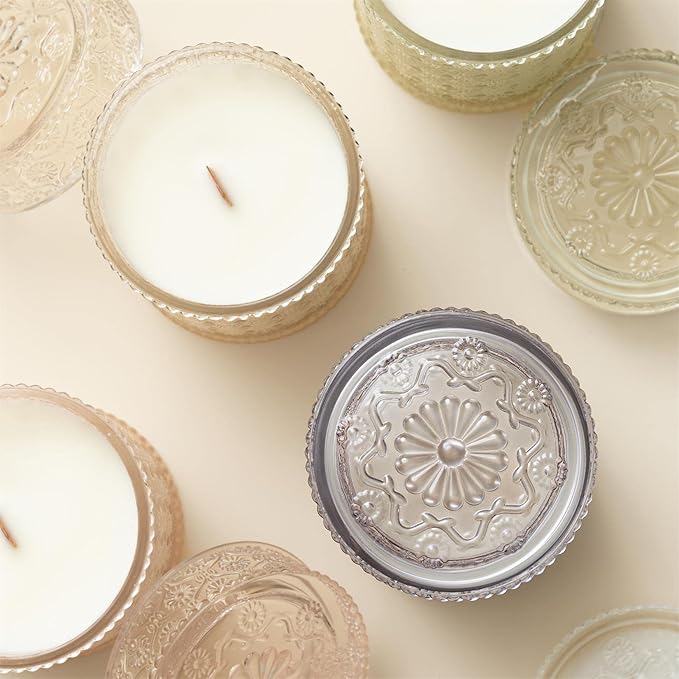 MAELYNコレクション:古代の庭園やヨーロッパの邸宅に着想を得た、エレガントなガラスキャンドル。繊細なフローラル模様のエンボス加工が施され、温かみのあるニュートラルな色合いが空間に上品な魅力を添えます。歴史の趣と自然の美しさを暮らしにプラス
