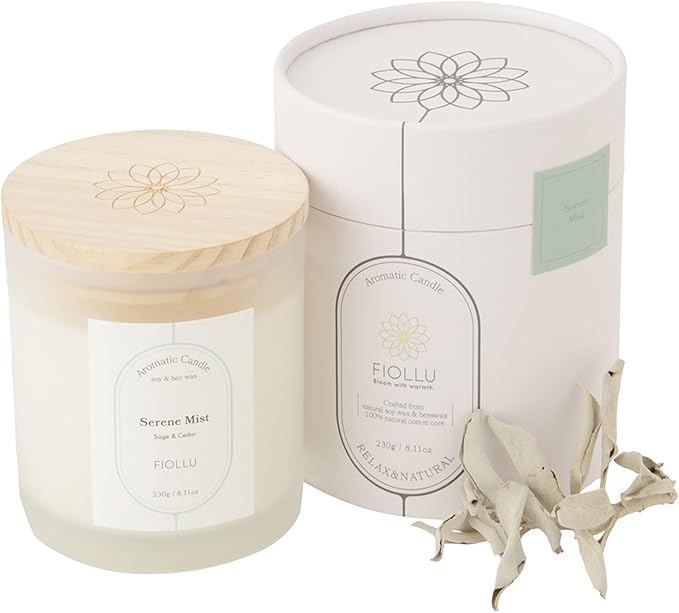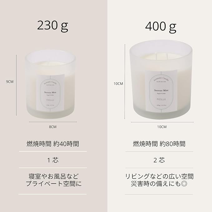 アロマキャンドル 燃焼約40時間 (セージ、シダー)【アロマセラピスト監修】天然ソイワックス&蜜蝋 癒し 無煙綿芯230g ギフト Serene MIst