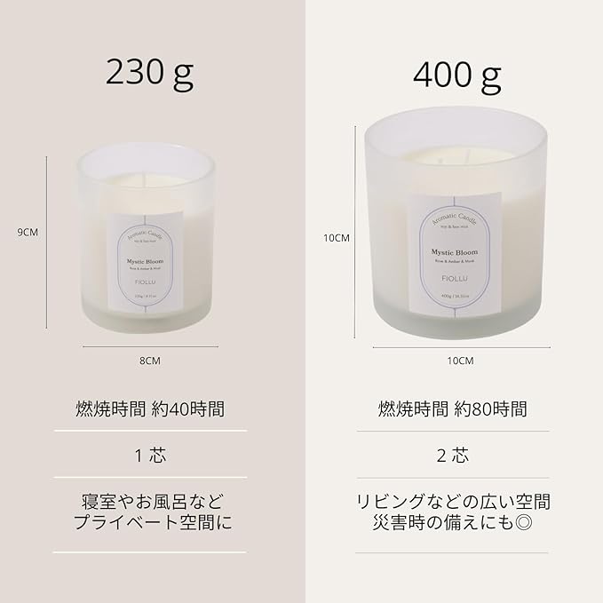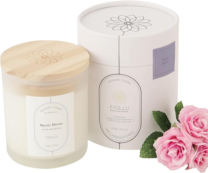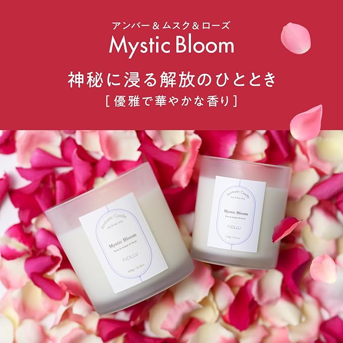 FIOLLU アロマキャンドル Mystic Bloom は、アロマセラピスト監修の“心を深くととのえる”神秘的な香り。 ローズの上品さに、アンバーとムスクの奥行きが重なり、まるでスパにいるような没入感を生み出します。 天然ソイワックス&蜜蝋を使用し、煙の少ない穏やかな灯りとともに癒しの空間を演出。 シンプルで上質なデザインは、クリスマスギフトや誕生日、母の日、引っ越し祝いなど、大切な方への贈り物にも最適です。 “日常からの解放”を感じる特別なひとときを、自分にも、大切な方へも。