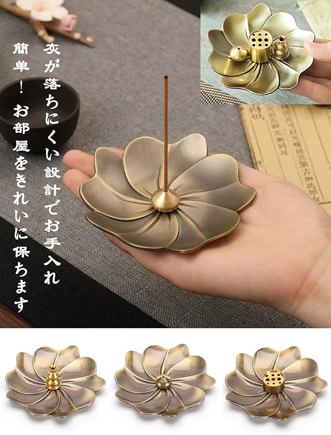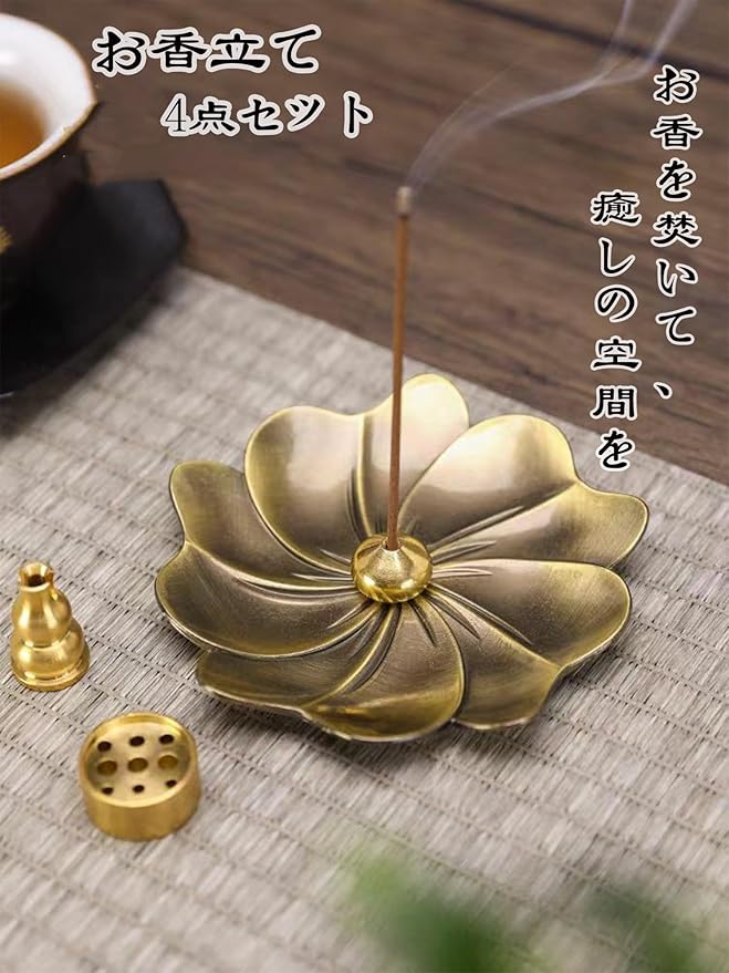 お香立て 4点セット 線香立て お香置き 香皿 仏壇用皿 癒やし 香炉 ブロンズ製 インテリア お香たて お香入れ おしゃれ お香立て 御洒落