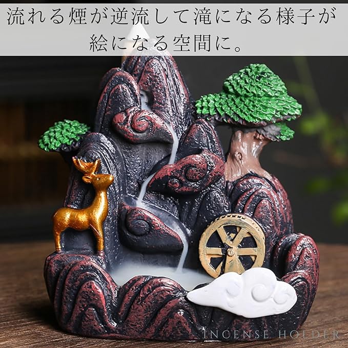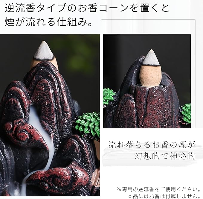 香炉の上で逆流香に火をつけると、山からの煙が滝のようにゆっくりと流れ落ち、周囲を囲む、神秘に満ちた香炉です。