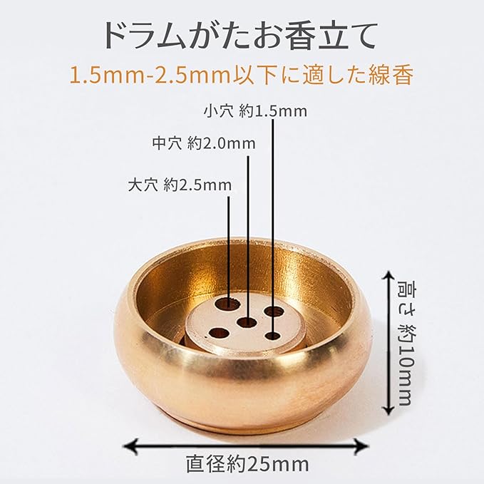 ✅️【線香立て】 パケージ内容:ドラムがたお香立て*1個。素材:真鍮 。サイズ:(鼓型)直径2.5cm*高さ1cm 穴サイズ:(鼓型)2.5mm、2mm、1.5mm。1.5mm~2.5mmの線香に適しています。購入時に確認してください。