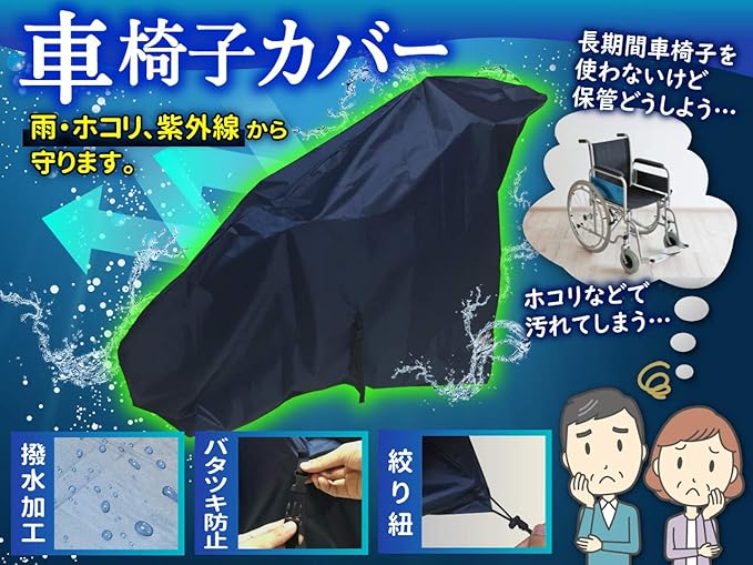 車椅子カバー 車いすカバー しっかりした撥水性生地で雨風から車椅子を保護 裾絞り・ベルト付きで風で飛ばされない 車椅子 レインカバー 車椅子用カバー 車いす用カバー 保管カバー