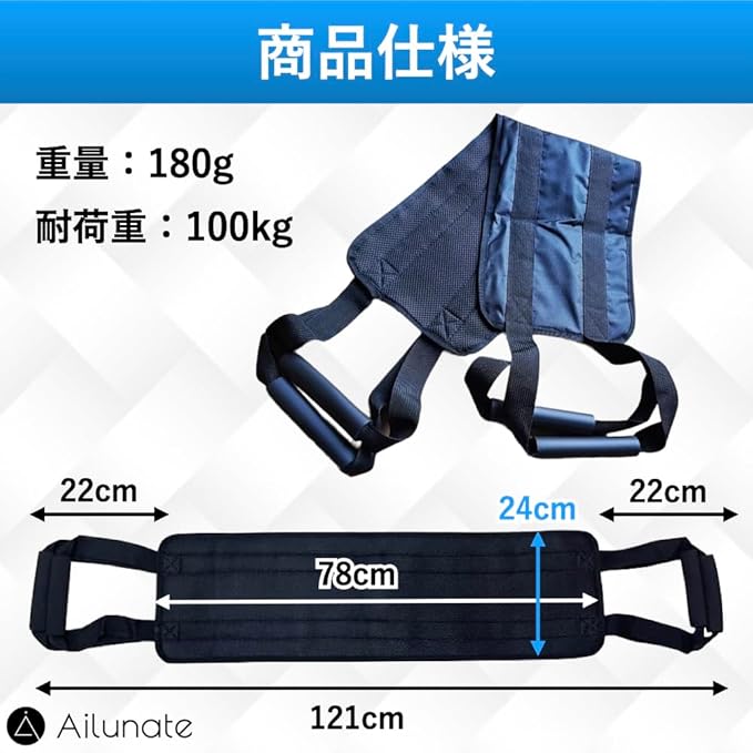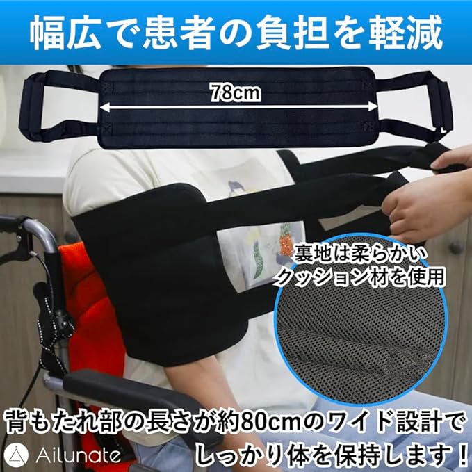 Ailunate 移乗ベルト 立ち上がり補助 介護用品 移乗シート 介護ベルト 介助ベルト 移動サポート 起き上がり補助具 ハンドル付き
