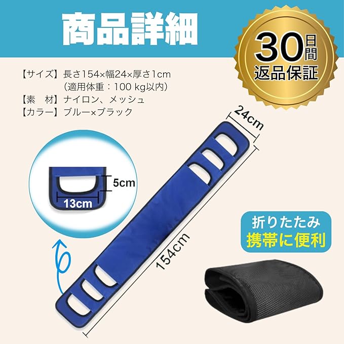 【寸法】長さ154 幅24 厚さ1cm【機能】ハンドル付き、起き上がり補助、足上げサポート【素材】ナイロン、メッシュ【カラー】ブルー ブラック※モニターの環境により、色の見え方に若干差が生じる場合がございます。