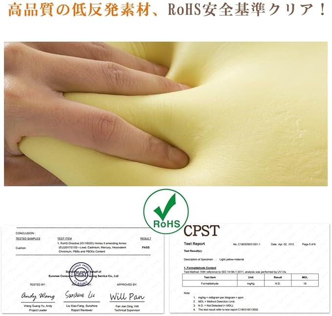 【低反発素材・上質な製品】低反発ボリウレタンを採用し、しっかりと体を支えて、お尻にかかった圧力を分散して、長時間を座っても決して変形しません。上質な製品を提供するの為、欧州基準検査(RoHS)を行い、安.全基準クリア!優れた製品をお届けますので、プレゼントとしても最適です。(本製品試験番号:IKS-002)