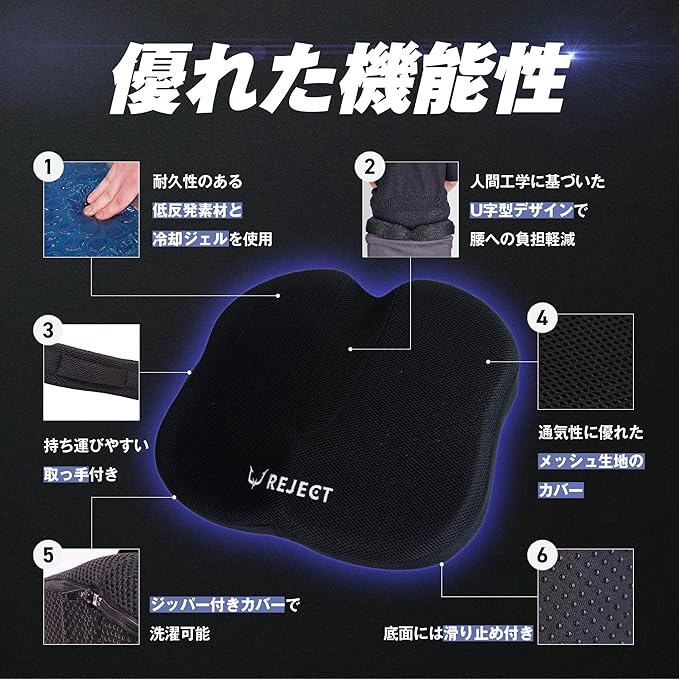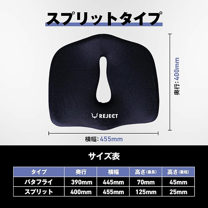 【プロeスポーツチーム監修】 REJECT クッション 椅子 ゲーミングチェア オフィスチェア リモートワーク デスクワーク ゲルクッション 座布団 低反発 GAMING CUSHION (SPLIT TYPE)