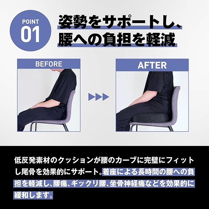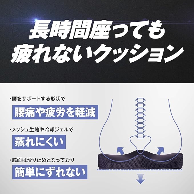 ✅長時間座る方におススメ:ゲームやオフィスワーク、車の運転など長時間の座位でもお尻や腰に負担がかかりにくい