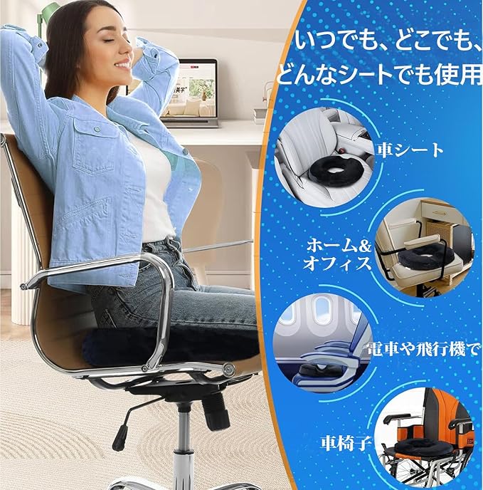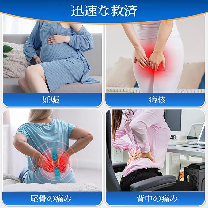✔️【凹型デザイン & 特別な硬さ】市場のお客様の声によると、硬すぎるクッションはお尻を圧迫することがあるそうです。様々な素材の配合を何度もテストし、適切な硬さを実現しました。「U」字型のカットにより、尾骨と お尻の圧力が軽減され、快適性 がさらに向上します。長時間のデスクワーク・在宅勤務・産後ケア・痔・腰痛対策に。