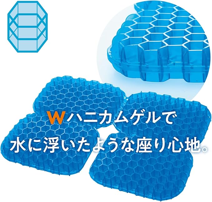 コジット 水に浮いたような座り心地 長時間座ってもお尻が痛くなりにくい Wゲル携帯クッション ハネナイト ネイビー