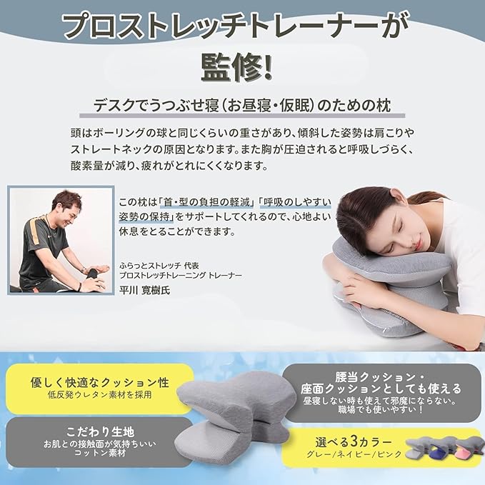 パワーナップピロー お昼寝枕 うつ伏せ 枕 うつぶせ寝 会社 オフィス 仮眠 デスク枕 まくら クッション 昼寝枕デスク (グレー)