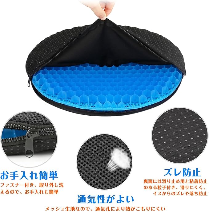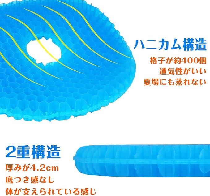 ゲルクッション 円座クッション 座布団 体圧分散 腰楽クッション 空洞デザイン 柔軟性 通気性 滑り止め カバー付き 自宅 オフィス 車 椅子に適用