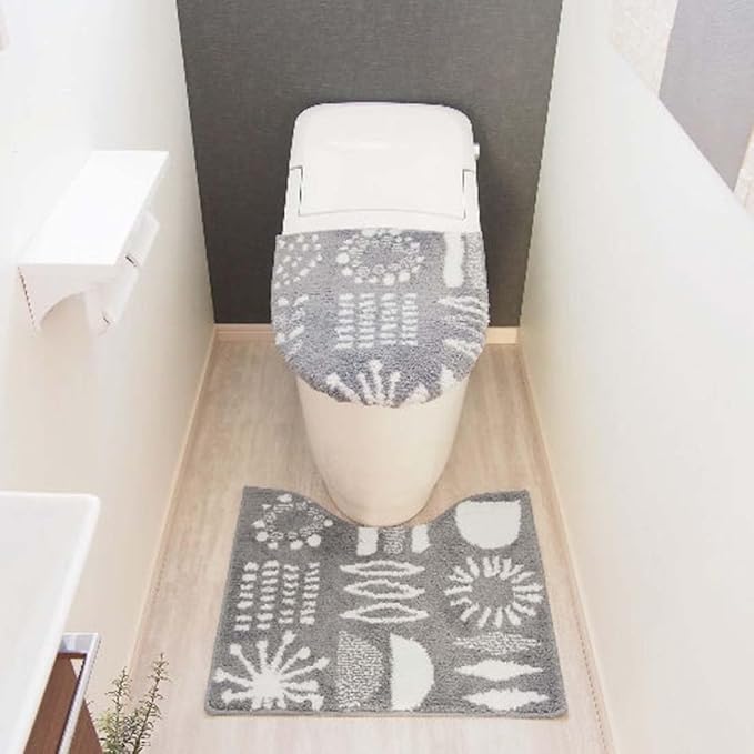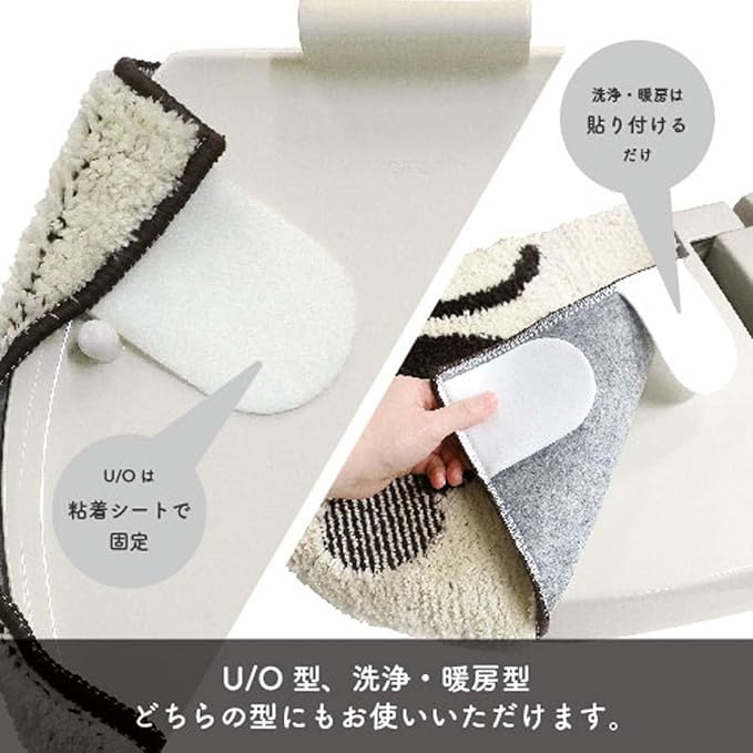 ふんわりと柔らかい肌触りの糸を使用した、U・O型/洗浄・暖房タイプ、どの型にも対応したフタカバーとトイレマットのセットです。