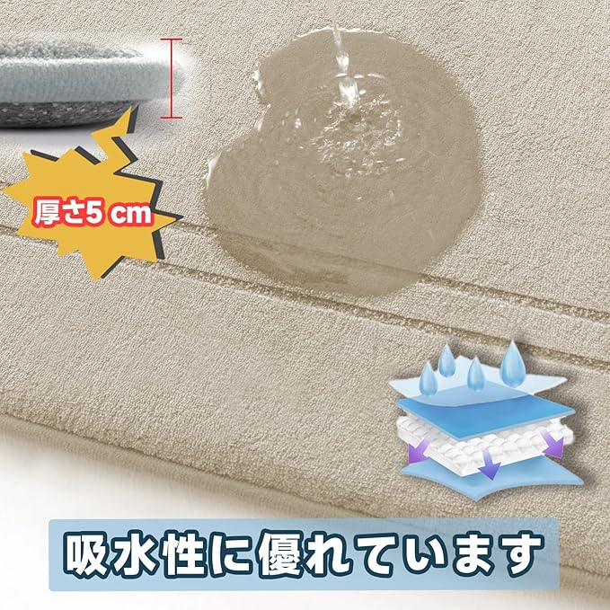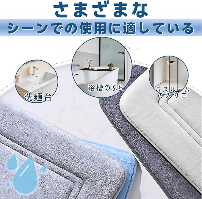 多用途に使える人気マット:トイレ、浴槽、浴室ドア、洗面台、脱衣所などで「お風呂マット」「洗面所マット」「足拭きマット」として使え。日常使いのほか、品質重視の賃貸住宅やホテルにも最適で、人気のトイレマットランキングにも入る人気商品です。