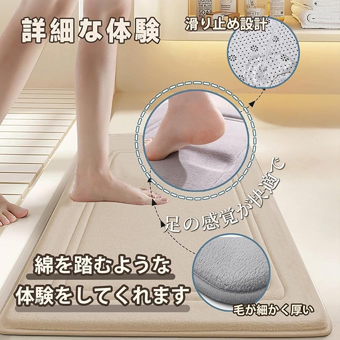 高品質のあしふきマット:高密度超微細繊維を用いて作られ、肌にやさしい快適さ、快適な綿の感触をもたらす。精巧に作られた縁取りが耐久性を確保し、美観と実用性を兼ね備え、バスルームのスタイルを高めます。