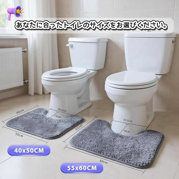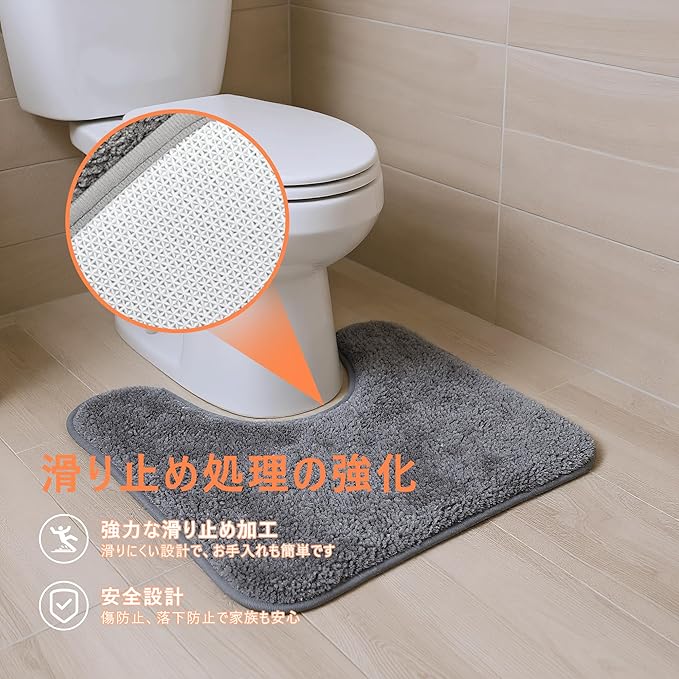 Makuru トイレ マット 速乾 洗える 安い おしゃれ といれまっと 大きい トイレマット 滑らない 抗菌イオン入 吸水 大判 Toilet Mat U字型 足拭き