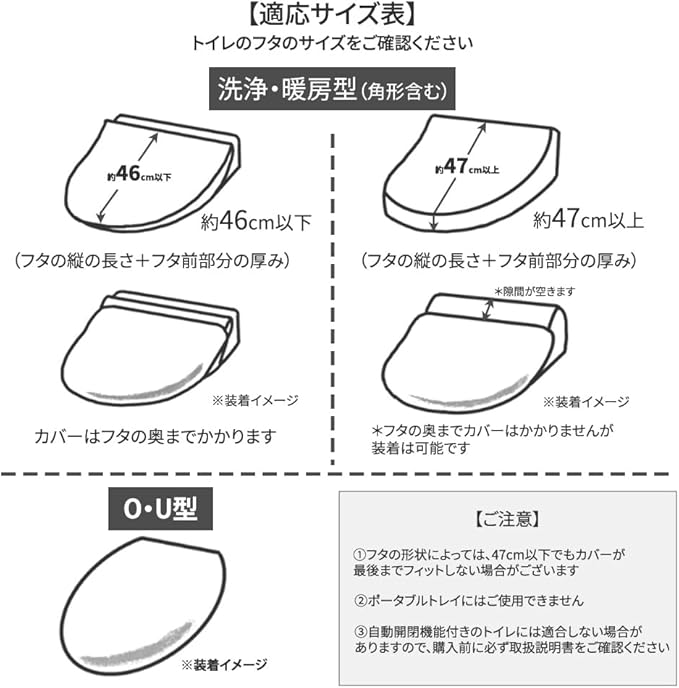 U/O型、洗浄暖房型に対応したフタカバーは、被せて吸着シートで固定するだけの簡単取り付け。