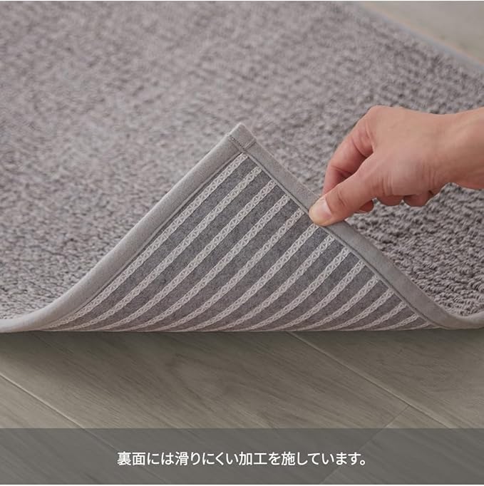 トイレマットは裏面滑り止め加工が施されているので、小さなお子様がいる家庭でも安心して使用できます。