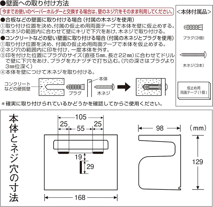 取付方法:木ネジ(プラグ付)