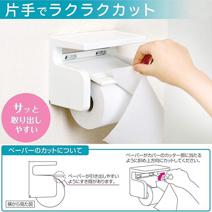 片手でトイレットペーパーが切れる。