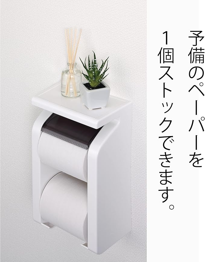 東和産業 トイレットペーパーホルダー GR 棚付きペーパーストックホルダー ホワイト 日本製