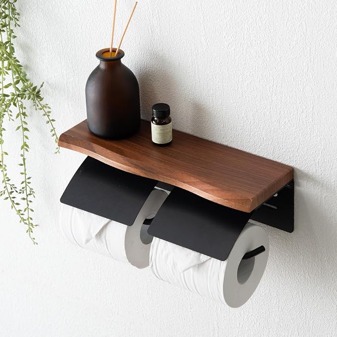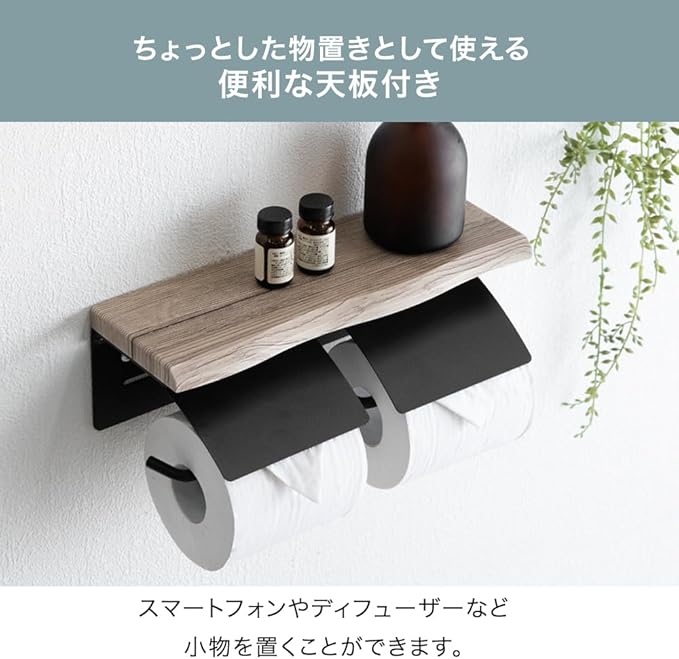 タンスのゲン トイレットペーパーホルダー 2連式 なぐり加工 飾り棚 棚付き ホルダー ペーパーホルダー トイレ用品 お手洗い シンプル モダン 72600054(89346)