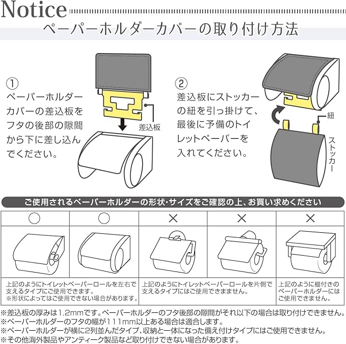 ※差込板の厚みは1.2mmです。ペーパーホルダーのフタ後部の隙間がそれ以下の場合は取り付けできません。