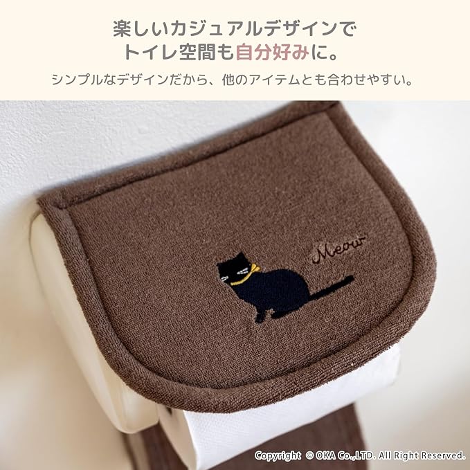 オカ(OKA) ミニョン トイレットペーパーホルダー ブラウン (ねこ かわいい カジュアル 幾何学柄 洗える)