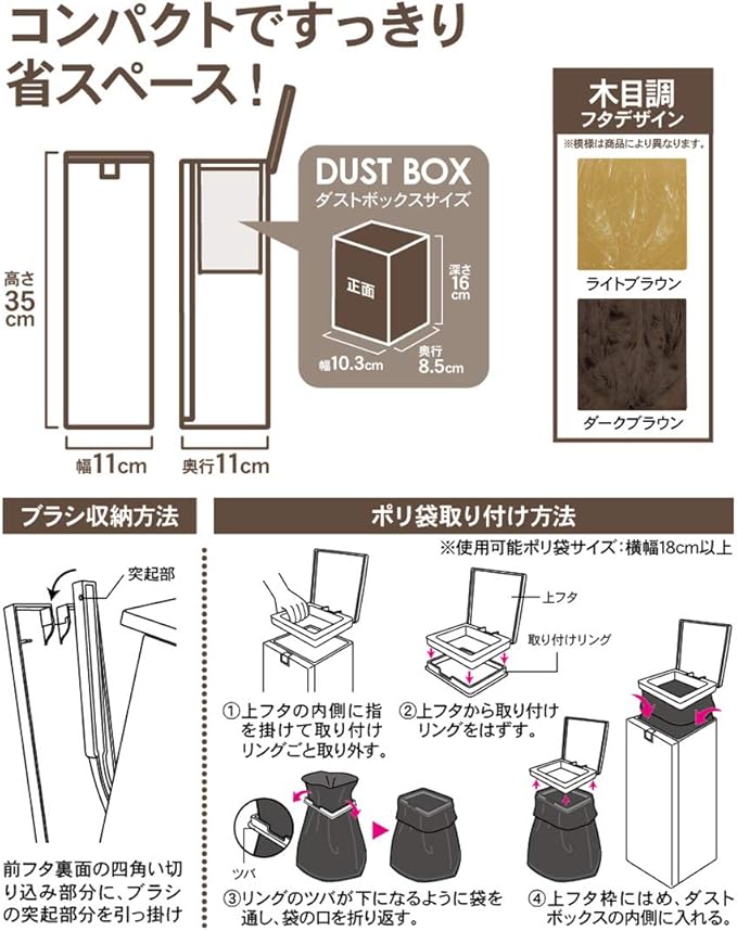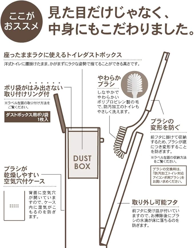 ●防汚加工のトイレも洗えるダストボックス一体型トイレブラシケース