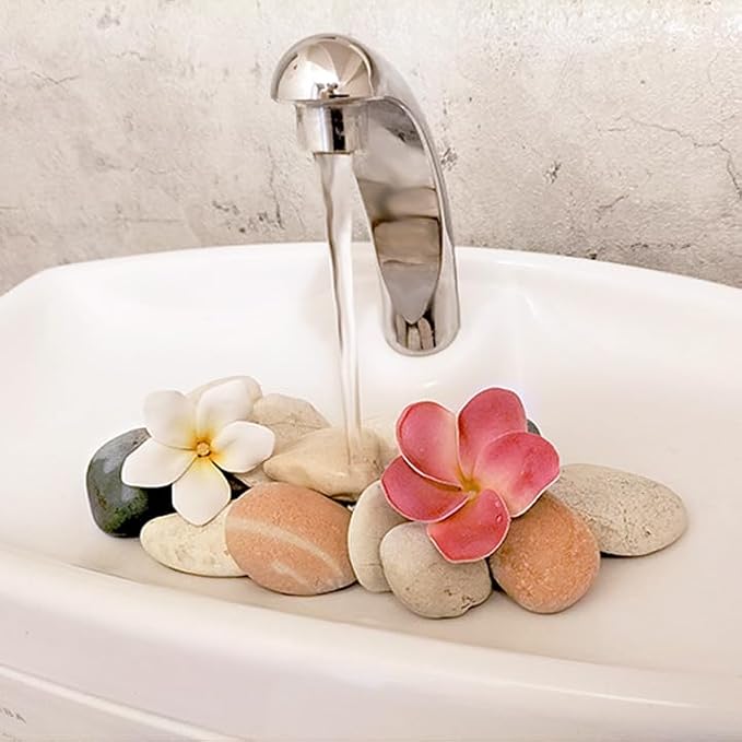 【Cocobari】トイレタンク 飾り石セット プルメリア造花付き トイレ インテリア 雑貨 おしゃれ 化粧石 飾り石 手洗い器 洗面ボウル 装飾用 ハワイ 南国 バリ雑貨 バリ風 小石 かわいい