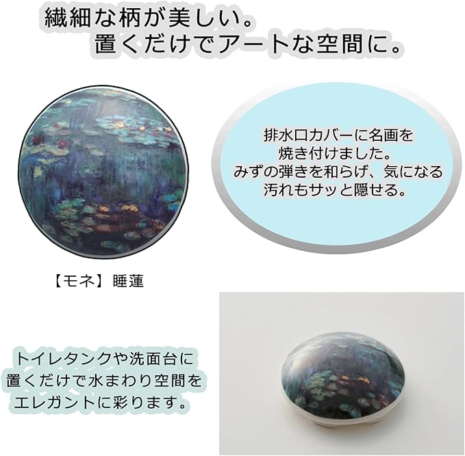 サンアート 名画 排水口カバー 睡蓮 洗面台 トイレ タンク カバー 水まわり かわいい インテリア おしゃれ アート エレガント 磁器 セラミック 蓋 流し台 お手洗い 81021200