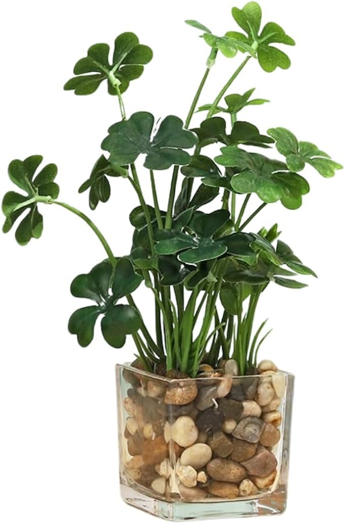 I'm so happy 観葉植物 フェイク 造花 ミニ 卓上 インテリア おしゃれ 人工 フェイクグリーン ガラスポット(常緑樹) (クローバー)