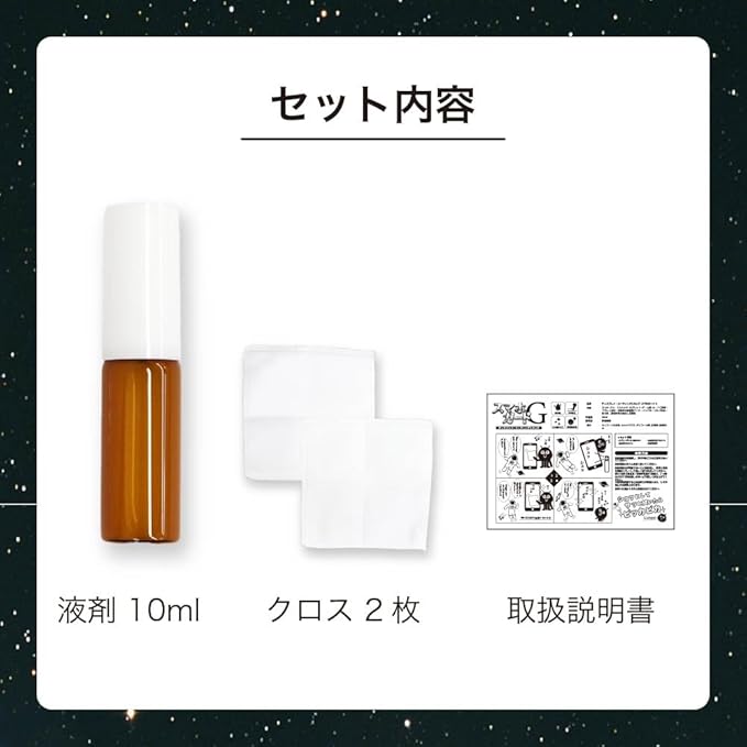 ・スプレーボトル 液剤10ml/塗布用クロス 1/拭き取り用クロス 1/取り扱い説明書