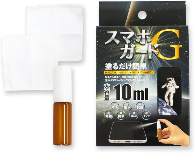 スマホコーティング 液体 スプレー 日本製 大容量 10ml スマホガードG 画面クリーナー クリーニング ディスプレイ 指紋防止/スマホ防水ケースのセット買い可 スマホ防水ケース IPX8 指紋認証 Face ID 認証対応 タッチ可 ロックレバータイプ 海 プール お風呂 (コーティング剤単品)