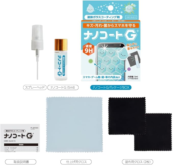液体スマホコーティング【ナノコートG】硬度9H・抗菌・防傷・撥水・耐指紋 iPhone│Google Pixel │ Android 全端末対応 CME-GL02-5 プラネックス Planex