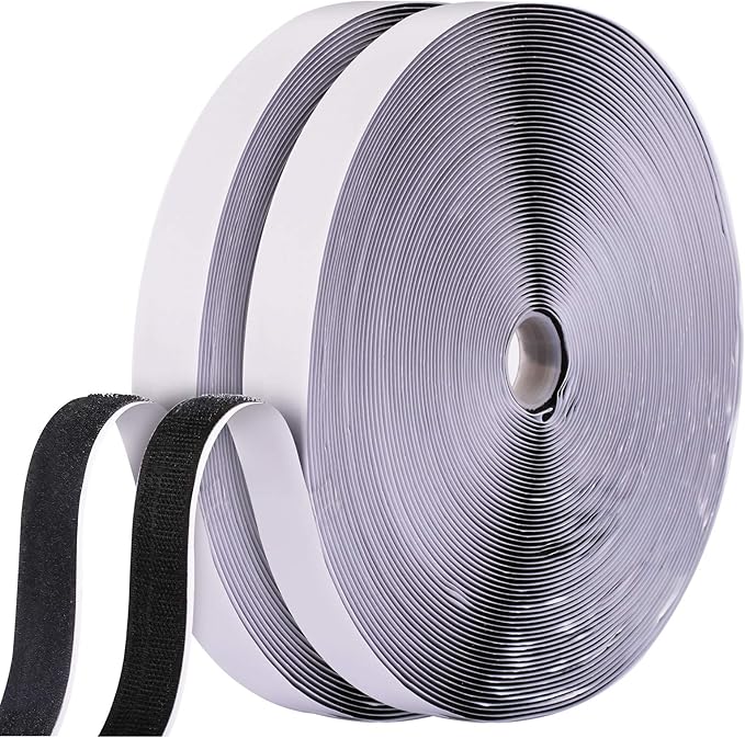 Leobro 面ファスナー 超ロング オスメスセット 各25M 16mm 両面テープ付き ブラック マジック粘着テープ 網戸用 車用 家庭用 工業用 業務用