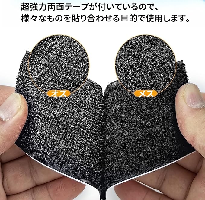 【超強力】強力なかみ合わせ力を持って、繰り返し脱着ができます。なお超強力両面テープが付いているので、様々なものを貼り合わせる目的で使用します。