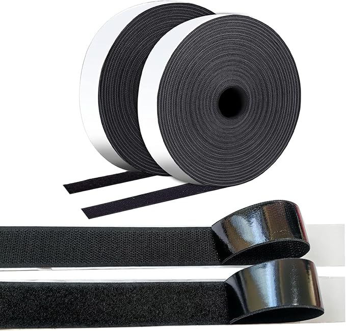 面ファスナー 超強力両面テープ付き マジック貼付テープ ファスナーテープ マジックテープ ベルクロ 強粘着裏糊付 耐熱 防水 超ロング オスメスセット (ブラック (幅25mm 長6M))