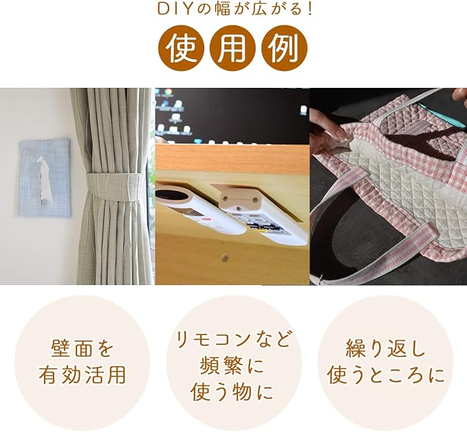 ※本商品はさまざまな素材への使用を想定しておりますが、金属・木製・布製品を含め、素材表面の凹凸や繊維の状態、接着面との相性などにより、使用環境によっては粘着力が十分に発揮されにくい場合がございます。