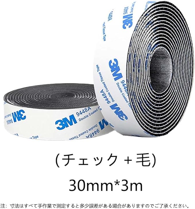 LIKENNY マジックテープ 両面テープ付き 強粘着裏糊付 オス・メス 面ファスナー 長3m*幅30mm 防水 防じん 耐熱 家庭/工業/業務/DIY手芸/車/網戸接着 補修用 ファスナーテープ 自由に裁断可能