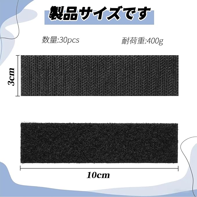 【アップグレードされた製品仕様】30個の絶妙なベルクロを特別にお楽しみください。各サイズは3cm x 10cm、クラシックな黒と白の色調、シンプルでファッショナブルです。さまざまなニーズに応えるバッチ装置、想像を超える価格性能比!