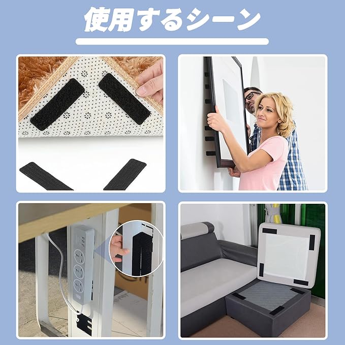 【高品質で強力なベルクロテープ】高度な高粘度の素材を使用し、強力な吸着力、安定した脱落防止、穏やかで剥がすときに残留物がなく、表面を傷から保護します。独自の設計により、裏地はヘアドライヤーの穏やかな熱で柔軟に伸縮し、より多くのシーンに適応します。