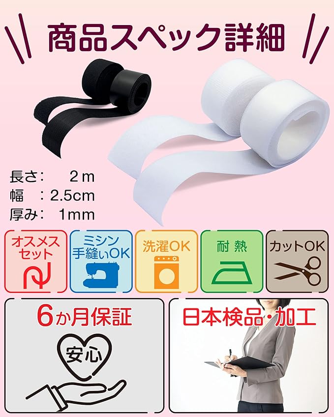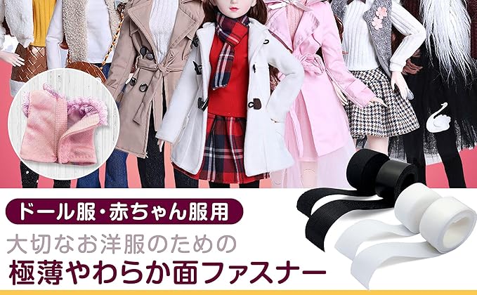 フルパ 極薄やわらか面ファスナー 厚さ1mm 手芸 ドール ベビー服 メカニカルファスナー 低刺激 裏のりなし 手縫い・ミシン用(幅2.5cm 長さ2m 白)