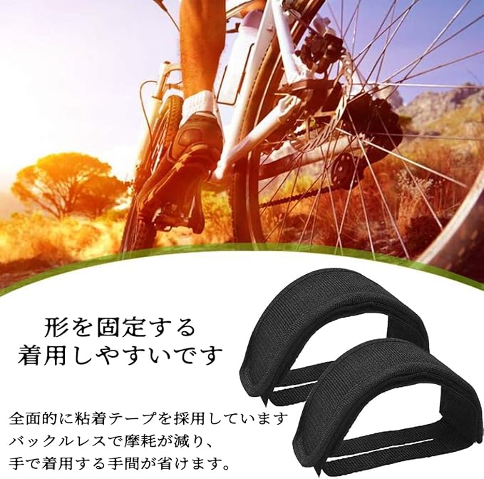 【特徴】バックルとシャックルのない自己粘着性テープ、バックル間の摩耗を減らします。しっかりと固定されるので、ペダルからの不意な踏み外しの心配がありません。
