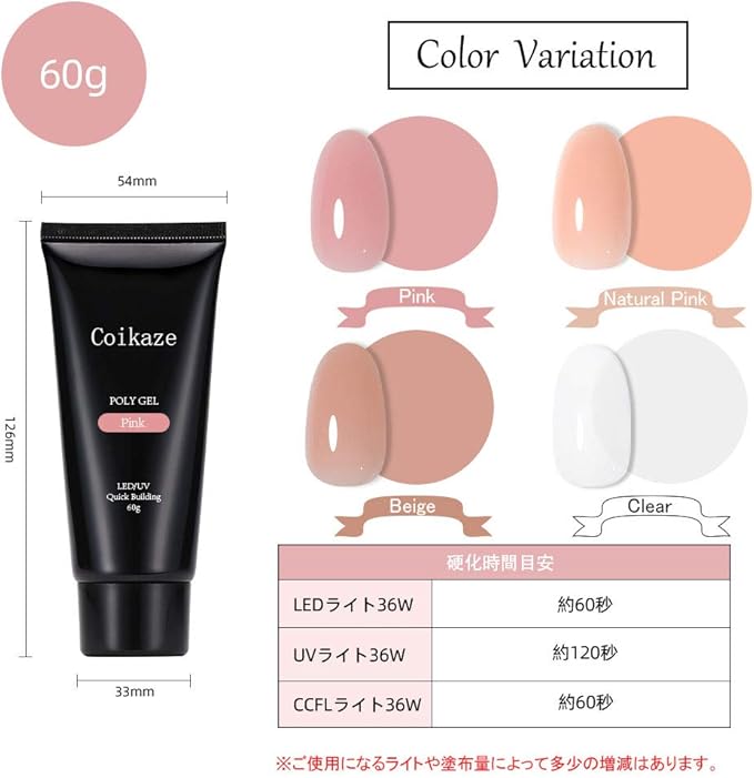 Coikazeクリアジェル ポリジェル 単品 ジェルネイル 長さだしジェル 60g 初心者にも使える UV・LED対応 (クリア)