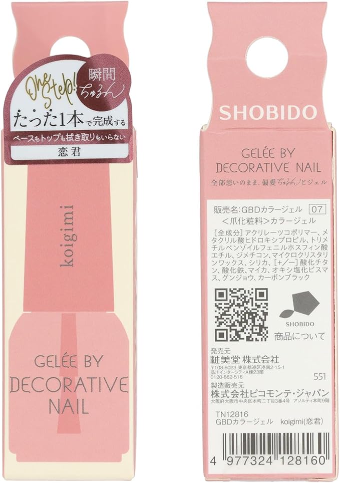 shobido 粧美堂 ジェリーバイデコラティブネイル カラージェル 5g 15色 HEMAフリー ジェルネイル サロン級 ツヤ感 ぷっくり感 (koigimi 恋君)
