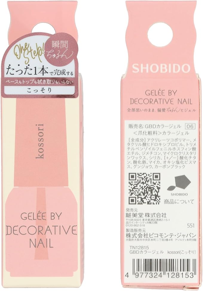shobido 粧美堂 ジェリーバイデコラティブネイル カラージェル 5g 15色 HEMAフリー ジェルネイル サロン級 ツヤ感 ぷっくり感 (kossori こっそり)