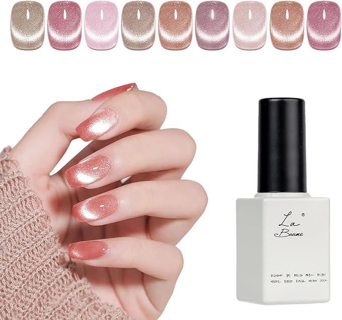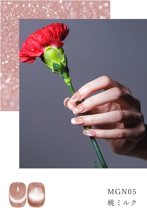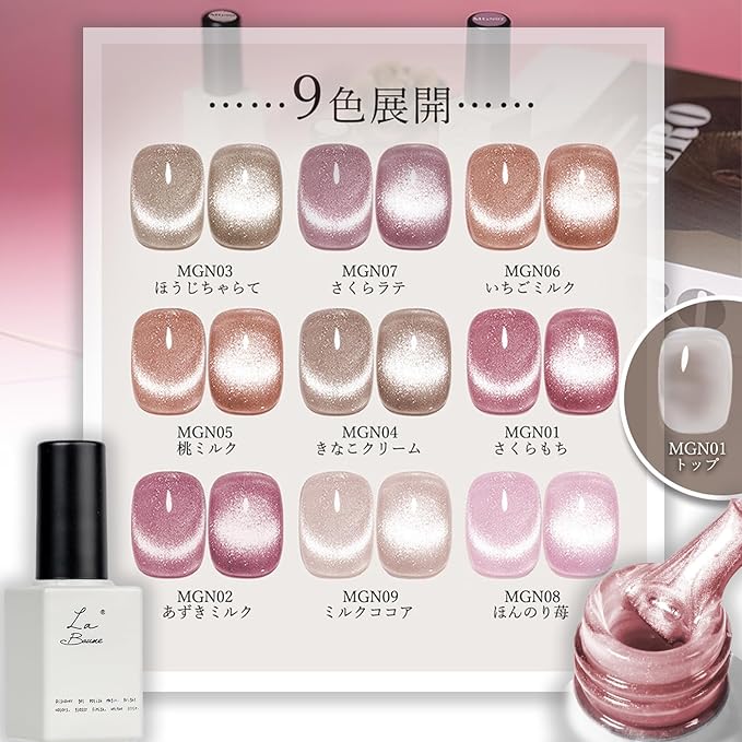 【La Baume日本監修・SNS話題沸騰中!】マグネットネイル 超微粒子 ジェルネイル【洗練された大人のネイルに・初心者向け自宅ネイル】キャッツアイジェル ガラス玉 7ml UV・LED対応 カラージェル キラキラ 眩しい 輝き 透明感 (桃ミルク)