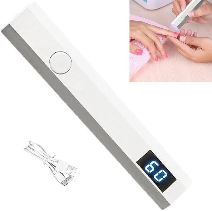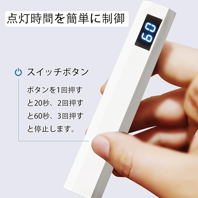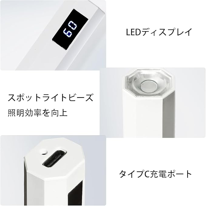 ネイルライト 充電式 ハンディ LEDディスプレ UV 硬化ライト 2階段タイマー 手足両用TYPE-C充電ポート 速乾 ペンネイルランプ ホワイト