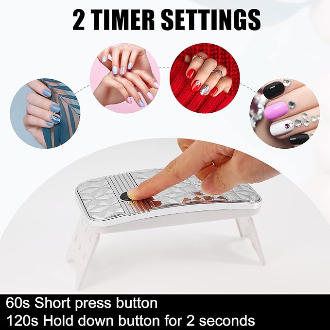 タイミング設定:さまざまなマニキュアの種類に応じて、60秒/120秒のタイミング設定を選択できます。